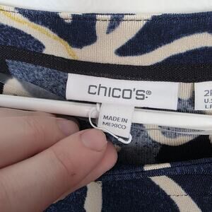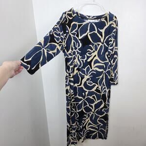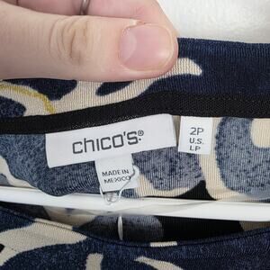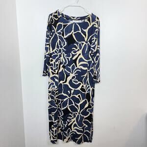 Chico's Travelers Blue Cream Floral Artsy Mature Modest Stretch Maxi Dress Sz LP