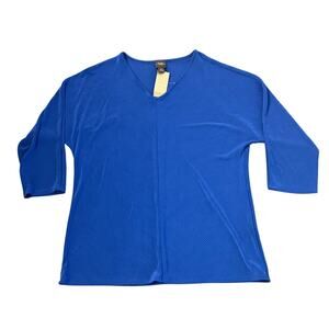 Chico’s Travelers by Chico’s textured knit top in a vibrant cobalt blue. Features a flattering V-neck, 3/4 sleeves, and wrinkle-resistant stretch fabric—perfect for travel, work, or everyday wear. Lightweight, packable, and comfortable.