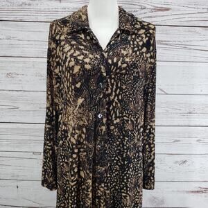Chico's Travelers Brown Paisley Slinky Button Front Long Sleeve Dress Size 3