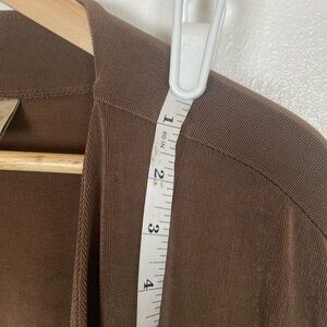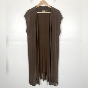 Chico's Travelers Cardigan Size 2 US L Brown Short Sleeve Fringe Open Front USA