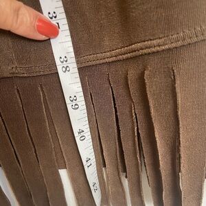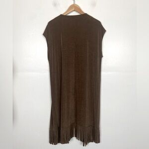 Chico's Travelers Cardigan. Size 2 US Large. Color Brown. Short Sleeve. Fringe. Open Front. Material content in images. Made in USA. Used good.