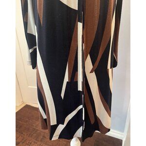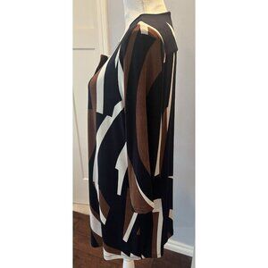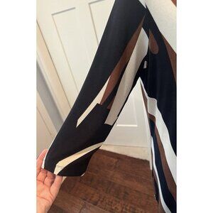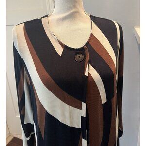 Chico's Travelers Cardigan Sweater Size 2 Navy Brown Cream Geometric Longline