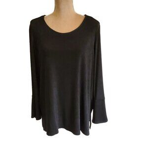 Chico's Travelers Classic Button-Sleeve Top. Size 3 (US 14/XL). Black. EUC.