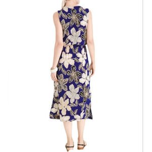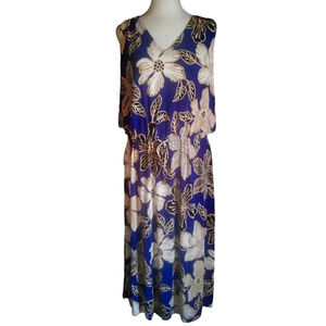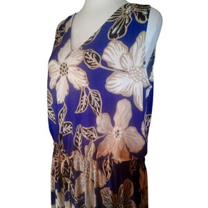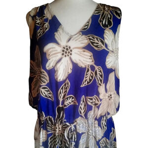 Chico's Travelers Classic Floral Print Drawstring Dress Blue Size Large Petite