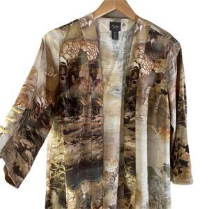 Chicos Travelers Collection Asian Inspired Duster Cardigan Oriental Small Artsy
