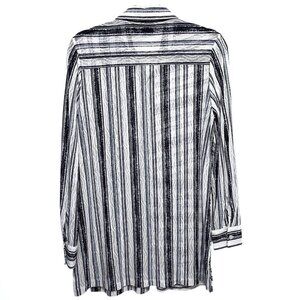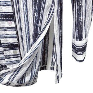 Chico's Travelers Collection Blue White Striped Button Semi-Sheer Shirt. Size 1.