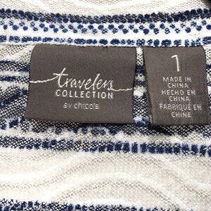 Chico's Travelers Collection Blue White Striped Button Semi-Sheer Shirt 1