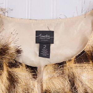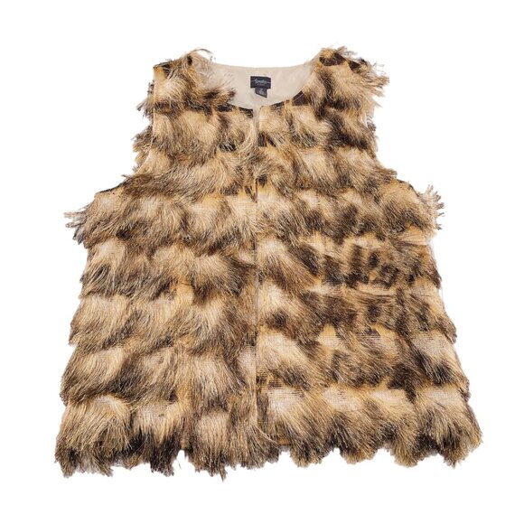 Chicos Travelers Collection Faux Fur Vest Size 2 Beige & Brown sz Large