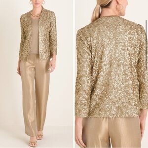 Chico's Travelers Collection Gold Sequined Jacket
