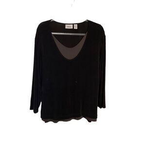 Chico’s Travelers Collection Long Sleeve Black Brown Layered Top Size 3= XL