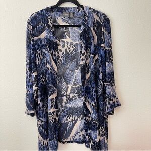 Chico's Travelers Collection Mesh Abstract Leopard Print Top Button Up Sz 2 Lrg. In great preworn condition. Nylon and Spandex blend. Approximately 19” from pit to pit and approximately 30” from shoulder to hem.