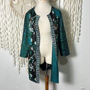 Chico’s Travelers Collection Mixed Print Crushed Jacket With Hook Closure Size L