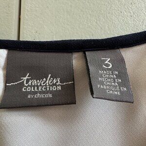 Chico’s Travelers Collection Navy Pleated Sheer Overlay Blouse – Size 3 (XL/16-1
