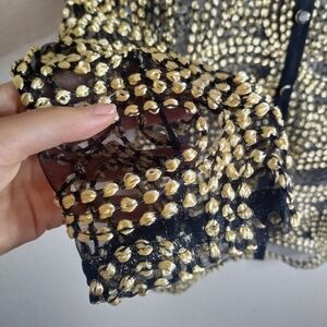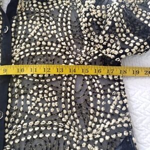 Chico's Travelers Collection Needle Stitch Mesh Gold Button Down Jacket Sz O/S/4