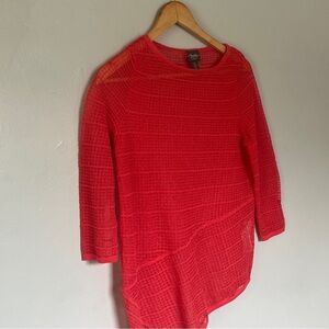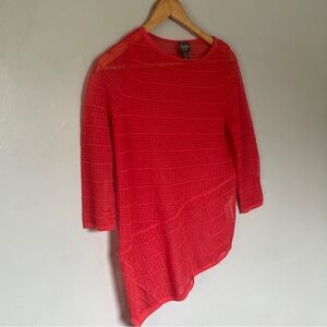 Chicos Travelers Collection Assymetrical Angled Tunic Knitted Knit Pullover Tangerine Pink Small