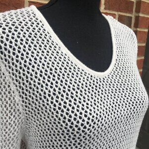 Chicos Travelers Collection Tunic Top Size 3/LG White Crochet Open Knit Beach