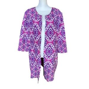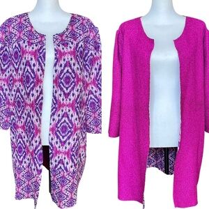 Chicos Travelers Collection Womens Sz 2 / 12 Reversible Pink Crushed Ikat Jacket