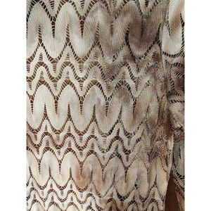 Chico's Travelers Collection size 0 (S/4) open front flame stitch jacket / cover up. 3/4 sleeves. 100% polyester. Brown tones.