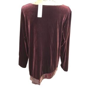Chico's Travelers Dark Mulberry Elegant Velvet Sequin Trimmed Tunic Top Size L