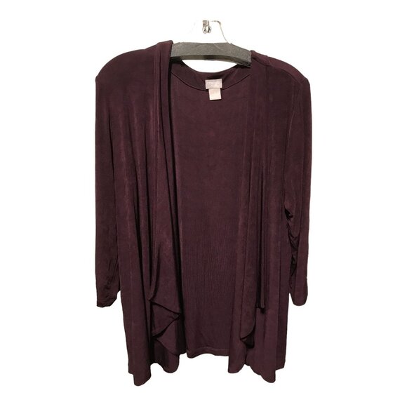 Chico's Travelers Deep Plum Open Front 3/4 length sleeve Women s Size XL Shirt