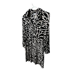 Chico's Travelers Dress Button Down 3/4 Sleeve Jersey Beige/ Black Size 2 large