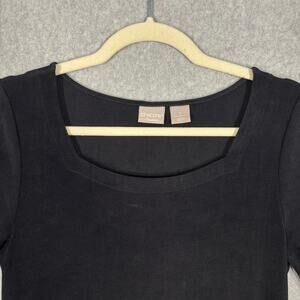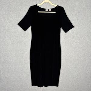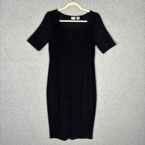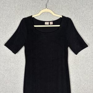 Chicos Travelers Dress Small Black Knit Pencil Secretary Basic Corp Career Work Office Business Church Classic Casual Short Sleeve Stretch Midi Knee Goth Witchy Slinky Minimal 4 0
