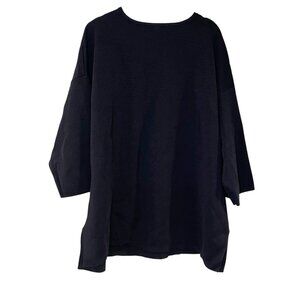 Chico’s Travelers Easy Chic Sweater Size XL Navy Blue Preppy 3/4 Sleeve V Neck