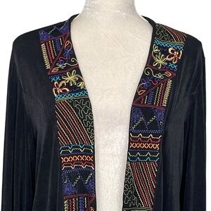 Chico’s Travelers Embroidered Open Front Jacket Cardigan Women’s Size 1 US M