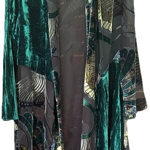 Chico’s Traveler’s Emerald Green Peacock Velvet Burnout Duster Boho Festival