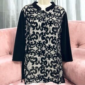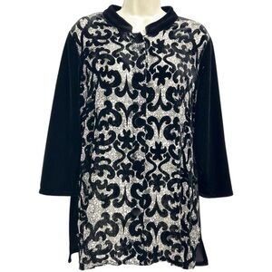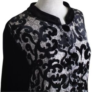 Chico’s Travelers Floral Velour Oriental Inspired Silk Blend Blouse Size 2 (L)