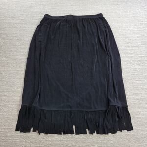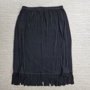 Chicos Travelers Fringe Skirt Womens XL Black Ribbed Faux Wrap Slinky Rodeo