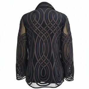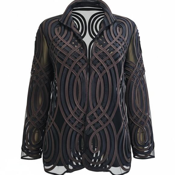 Chico’s Travelers Geometric Mesh Sheer Hook & Eye Jacket Size 1 (US 8/10)