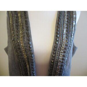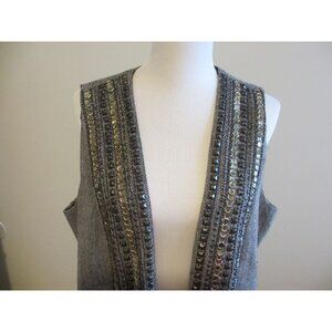 Chicos Travelers Gray Beaded Embellished Open Front Vest Size 1 Polyester Blend