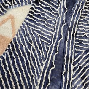 Blue white textured ruffle stripe Open front coverup.