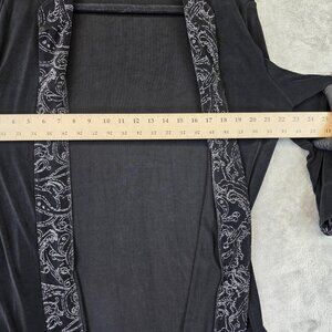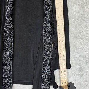 Chicos Travelers Jacket Womens 2 Black Paisley Embroidered Open Front Boho Casual