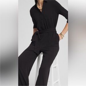 Chicos Travelers Jumpsuit Roll Up Sleeves Tie Belt Waist Black Size 18P