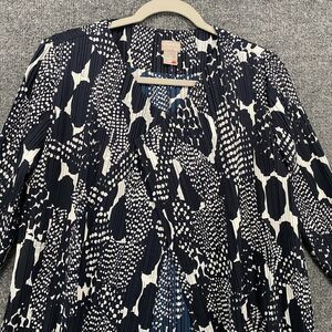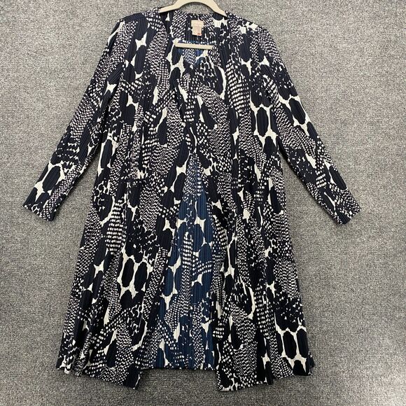 Chicos Travelers Kimono Jacket 0 Womens S Blue Pleated Open Front Long Duster