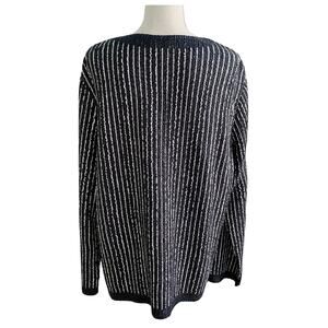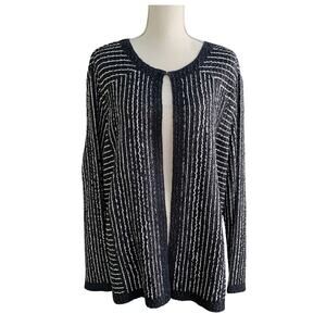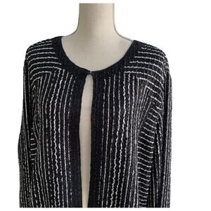 Chico's Travelers LS Open Front Cardigan Black/White Crinkle Striped Size 0