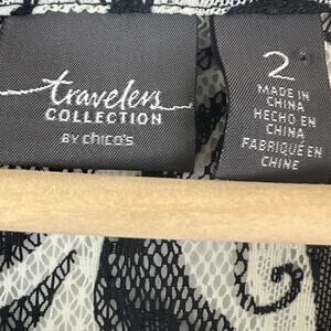 Chico's Travelers Lace Fringe Pullover Blouse Black/Ecru Baroque Size 2 Travel