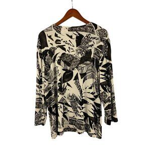 Chicos Travelers Leaf Print Top Size 3 Acetate/Spandex