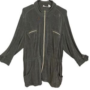 Chico’s Travelers Liquid Knit Olive Green/Gray Full-Zip Jacket