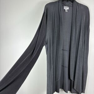 Chicos Travelers Long Open Cardigan Cascade Sz 2 Large Charcoal Gray Comfort