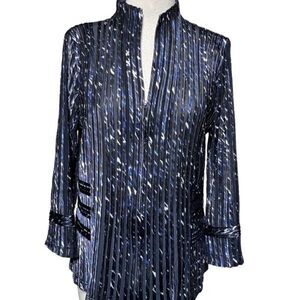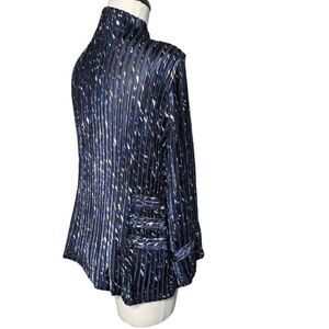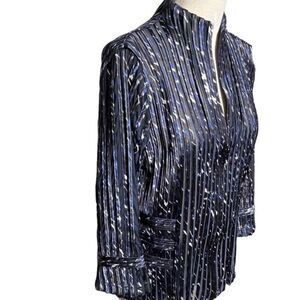 Features a silky ribbon and mesh striped texture with full front zip and lots of stretch. Laying flat measures 20" from pit to pit, 24" shoulder to the seam, and sleeves are 18.5". Be sure to check out all of my other Chico's listings