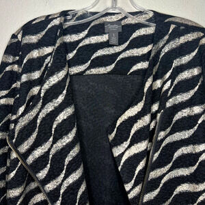 Chicos Travelers Metallic Black Wavy Striped Asymmetrical Zip Jacket Womens 1/M
