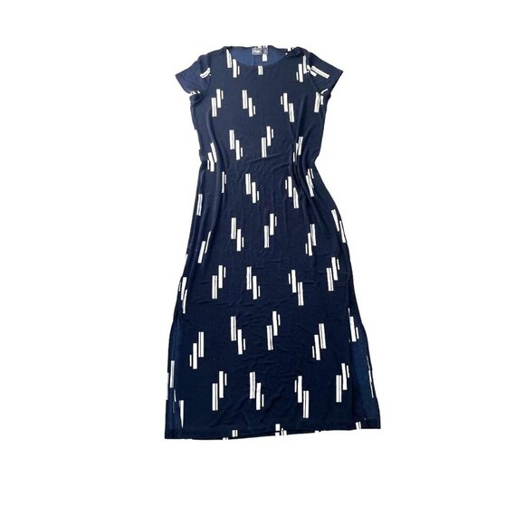Chico's Travelers Midi Dress Women's Size 1 Navy Blue White Geometric Print