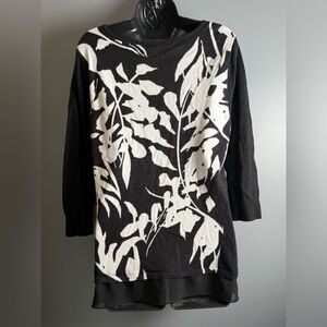 Chico's Travelers Monochrome Leaf Pattern Tunic Sheer Bottom Hem Womens Sz 2