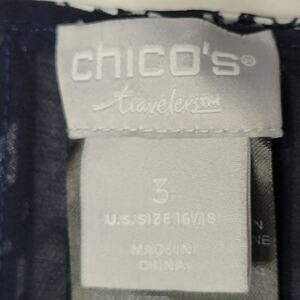 Chico's Travelers Navy Blue White 3/4 Sleeve Mesh Magnetic Jacket Cardigan Sz 3