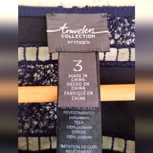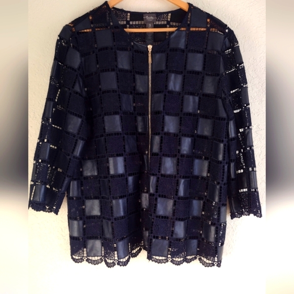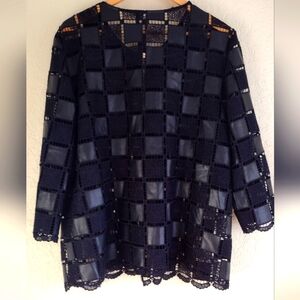 Chico's Travelers Navy Faux Leather Open Weave Jacket
