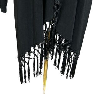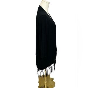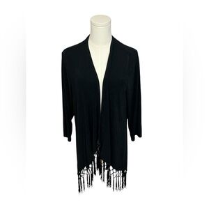 Chicos Travelers Open Cardigan Womens Large Black Tasseled Fringe Slinky Sz 2