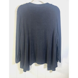 Chicos Travelers Open Front Cardigan Slinky Knit Ruched Size 3/XL Black USA